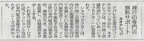 このたび、弊社は神戸商工会議所が兵庫県内の小規模事業者(常用の従業員数が、商業・サービス業は5名以下)向けに実施している、無料の店づくり専門家派遣サービス「ショップドクター」に、セレクトショップをはじめとする、「ファッション小売店」専門エキスパートとして登録されました。